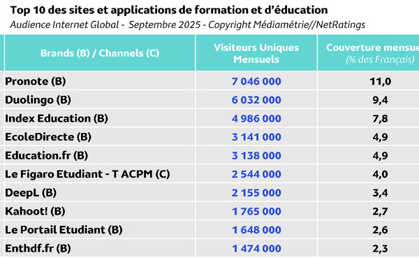 Les sites et applications de formation et d’éducation ont eux aussi fait leur rentrée en septembre en rassemblant 32.1 millions d’internautes, soit la moitié des Français (50%). Au quotidien, 9.8 millions d’entre eux ont visité cet univers.