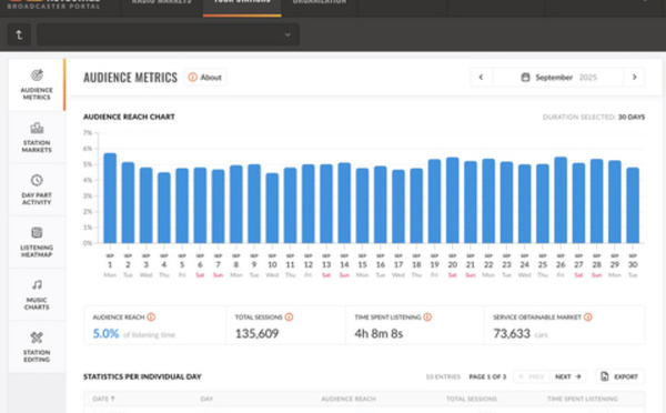 Xperi Inc. lance une nouvelle version du DTS AutoStage Broadcaster Portal, plateforme de mesure d’audience embarquée couvrant 250 marchés américains et alimentée par 12 millions de véhicules connectés. Le portail fournit désormais des données d’écoute détaillées et quasi instantanées, ouvrant à la radio des capacités analytiques comparables à celles du streaming.