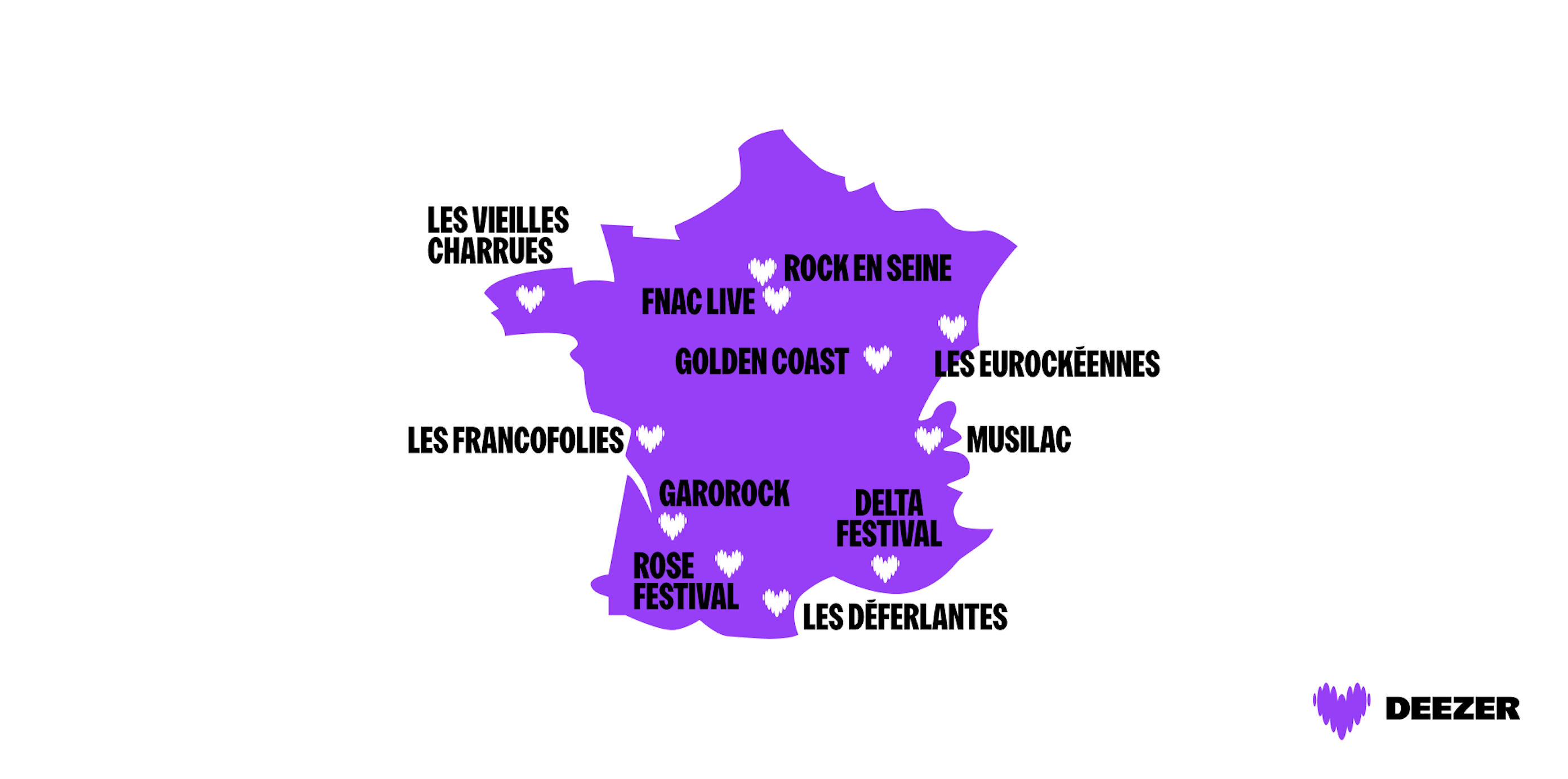 Deezer poursuit son engagement auprès des acteurs de la scène musicale française en annonçant sa participation à 11 festivals en 2025. L’an dernier, huit événements figuraient dans la liste. Cette année, la plateforme de streaming élargit son réseau à des rendez-vous implantés dans différentes régions, des Vieilles Charrues à Rock en Seine, en passant par le Rose Festival ou les Francofolies. Ce renforcement traduit une volonté de présence sur le terrain, au contact des artistes comme des publics. Sur place, plusieurs dispositifs sont proposés aux festivaliers, autour de formats interactifs conçus par Deezer. Un blind test personnalisé, intégré à la programmation de chaque festival, sera déployé comme animation centrale. Il sera accompagné d’animations vocales telles que des karaokés.
