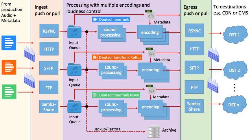 Dans les trois stations du diffuseur, Deutschlandfunk, Deutschlandfunk Kultur et Deutschlandfunk Nova, environ 300 à 600 fichiers audio par jour sont exportés par le traitement de diffusion et transmis aux installations aixtream pour le traitement et l'encodage du son. Outre les téléchargements de médias progressifs, Deutschlandradio fournit également du contenu à la demande segmenté via HLS. Grâce à aixtream et à la disponibilité du décodeur xHE-AAC via les appareils Android 9 et iOS 14, Deutschlandradio prévoit d'utiliser les dernières technologies de codage de Fraunhofer pour fournir xHE avec CMAF pour le streaming en direct et à la demande.