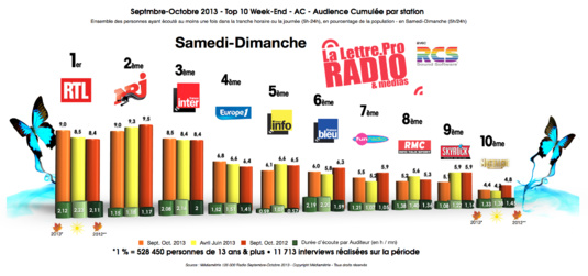 Diagramme exclusif LLP/RCS GSelector 4 - TOP 10 Week-end en Samedi-Dimanche - 126 000 Radio Septembre-Octobre 2013