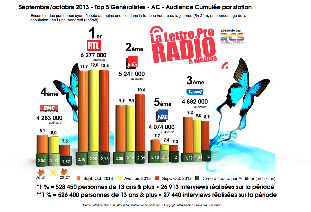 Diagramme exclusif LLP/RCS GSelector 4 - TOP 5 Généralistes en Lundi-Vendredi - 126 000 Radio Septembre-Octobre 2013