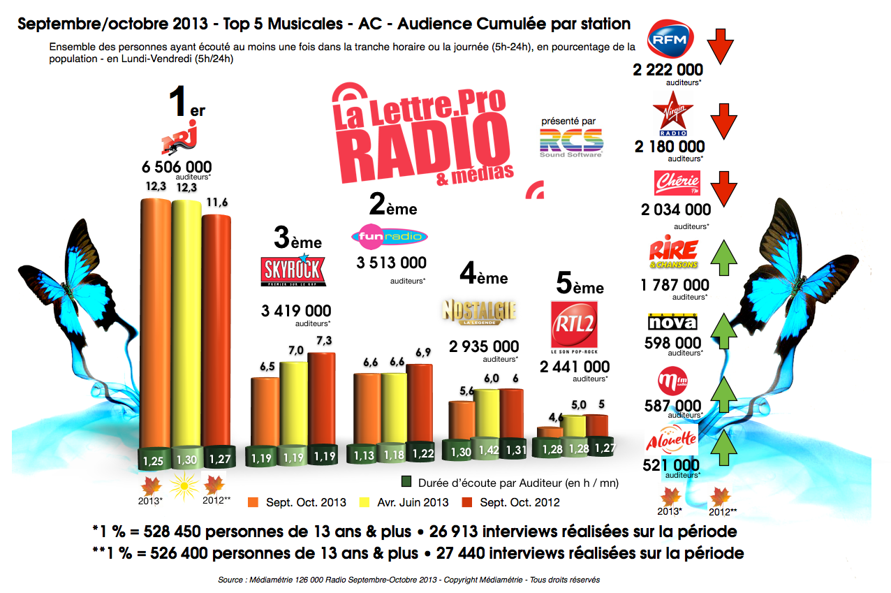 Diagramme exclusif LLP/RCS GSelector 4 - TOP 5 Musicales en Lundi-Vendredi - 126 000 Radio Septembre-Octobre 2013