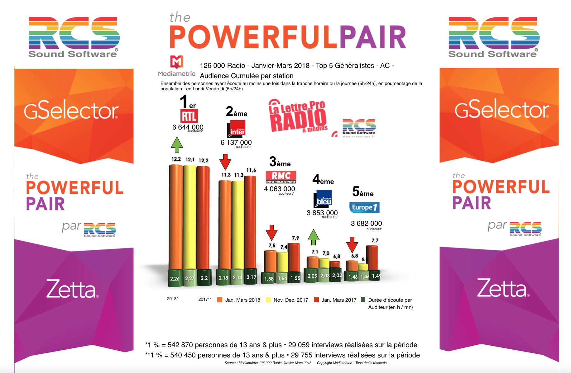 Diagramme exclusif LLP/RCS GSelector 4 - TOP 5 radios Généralistes en Lundi-Vendredi - 126 000 Radio Janvier-Mars 2018