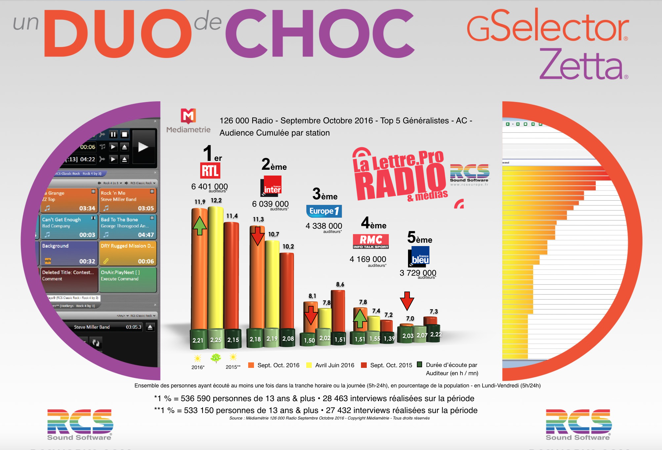 Diagramme exclusif LLP/RCS GSelector 4 - TOP 5 radios Généralistes en Lundi-Vendredi - 126 000 Radio Septembre-Octobre 2016