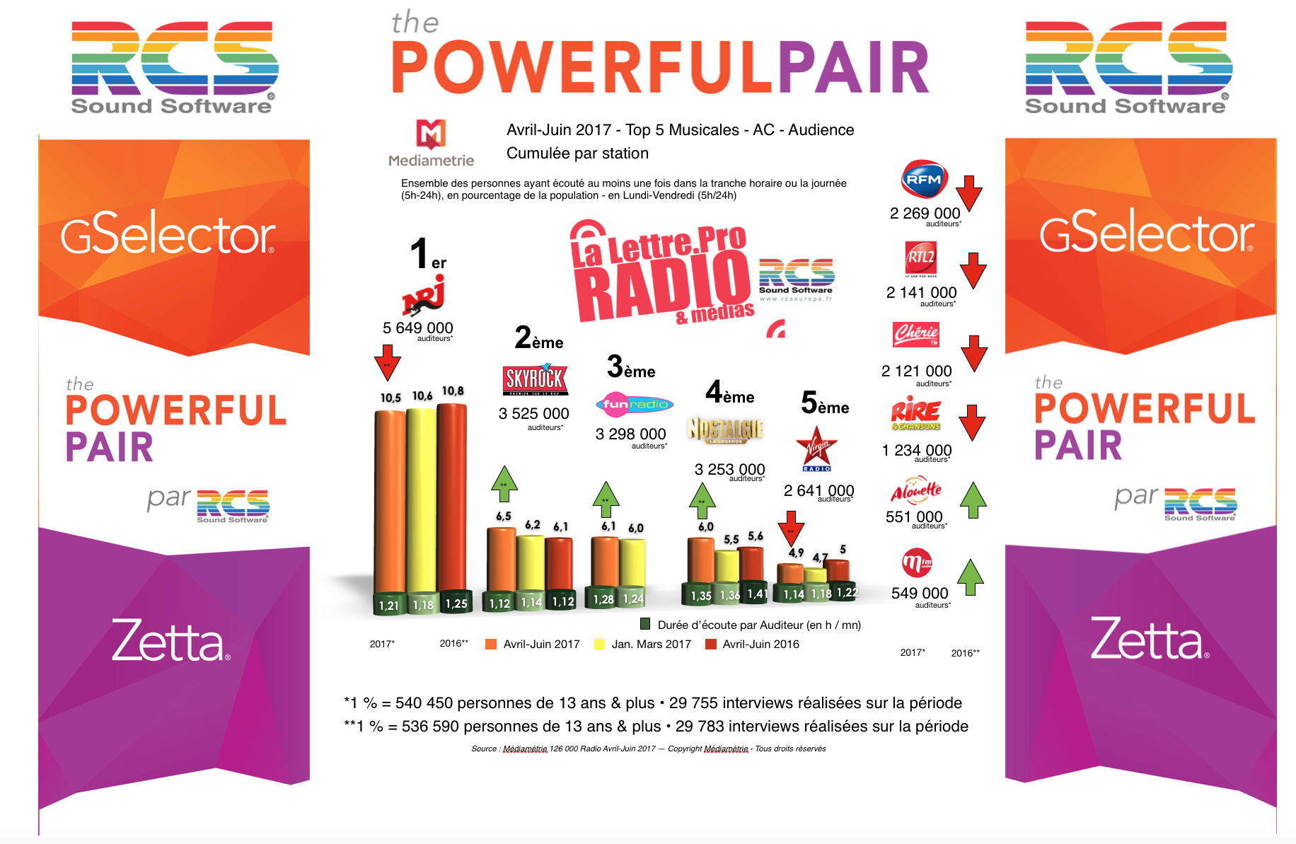 Diagramme exclusif LLP/RCS GSelector 4 - TOP 5 radios Musicales en Lundi-Vendredi - 126 000 Avril-Juin 2017