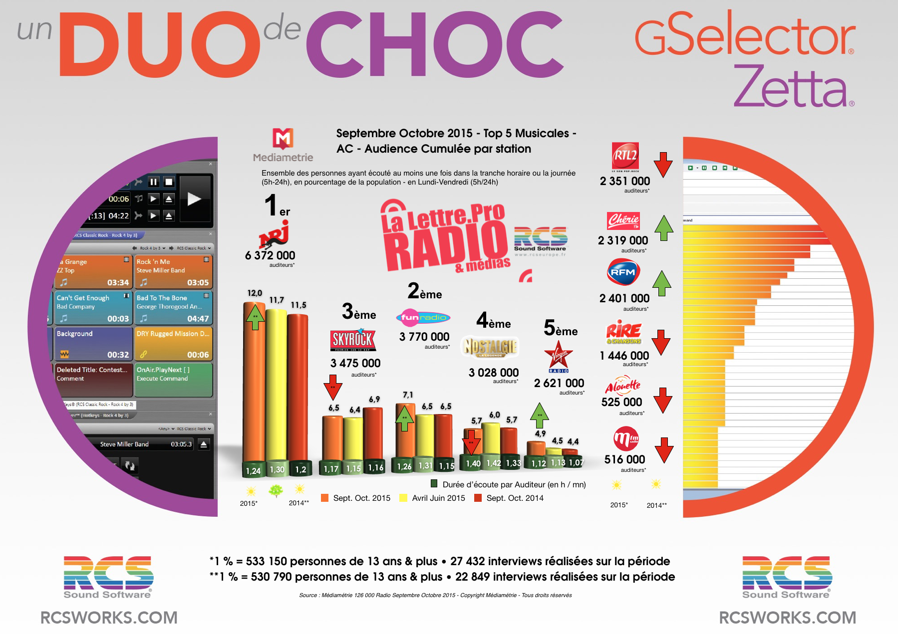 Diagramme exclusif LLP/RCS GSelector 4 - TOP 5 radios Musicales en Lundi-Vendredi - 126 000 Septembre-Octobre 2015
