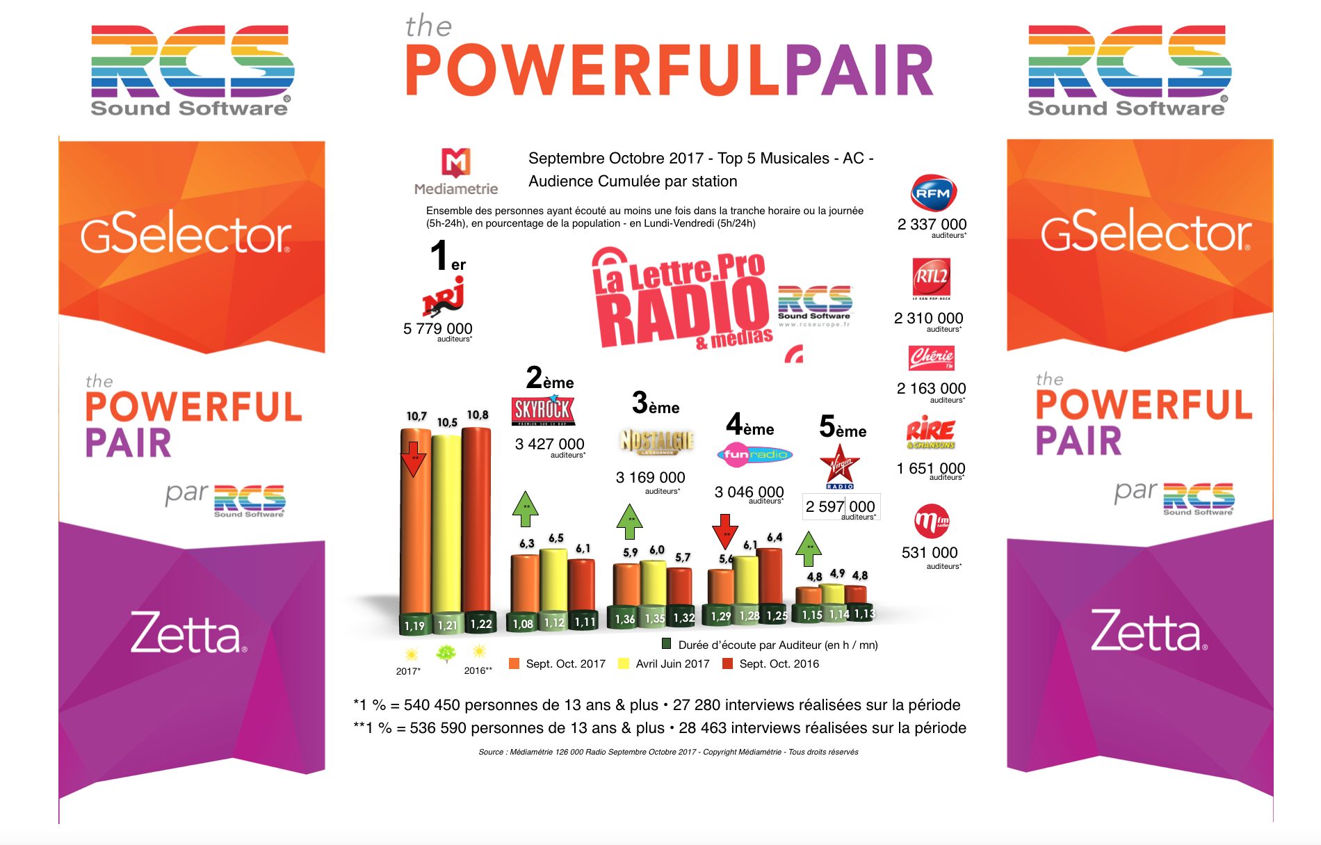 Diagramme exclusif LLP/RCS GSelector 4 - TOP 5 radios Musicales en Lundi-Vendredi - 126 000 Septembre-Octobre 2017