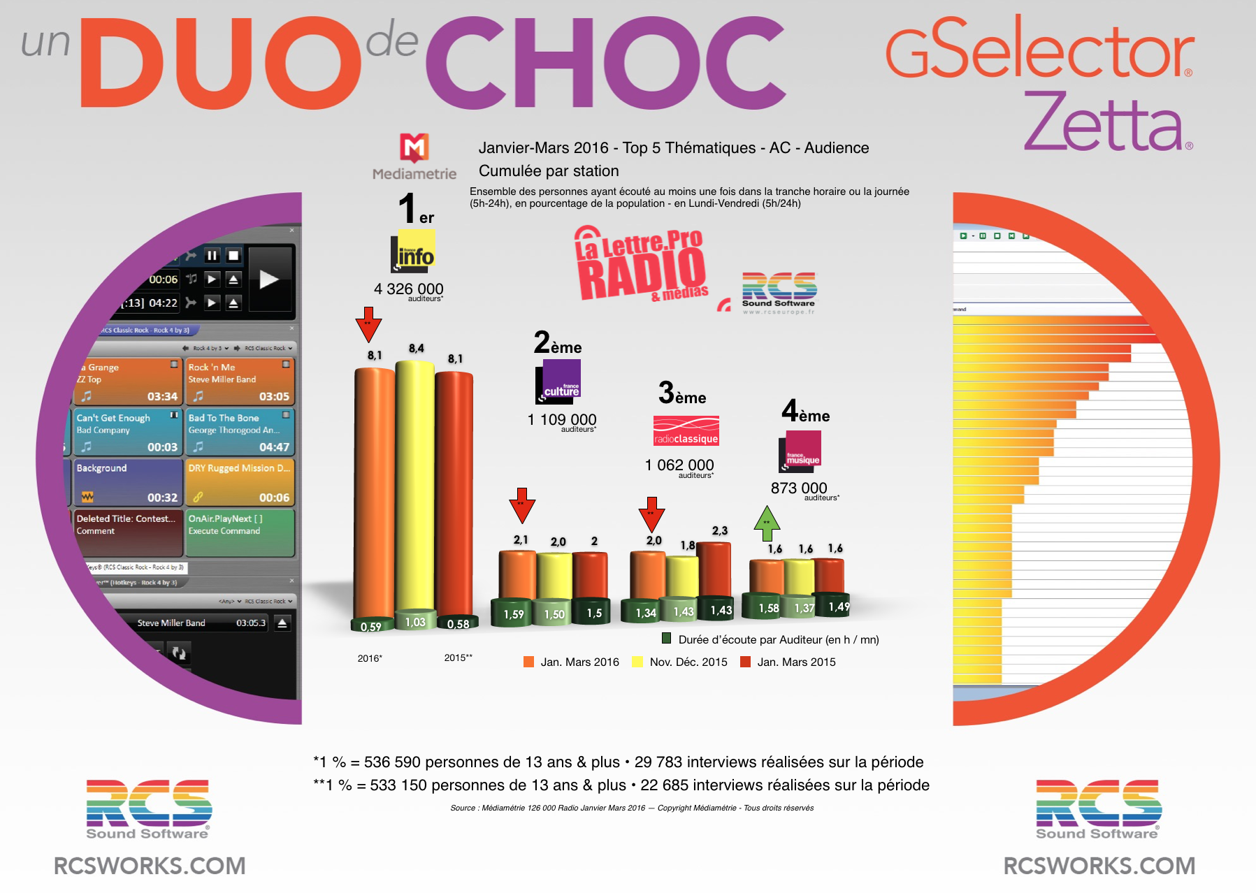 Diagramme exclusif LLP/RCS GSelector 4 - TOP 5 radios Thématiques en Lundi-Vendredi - 126 000 Radio Janvier-Mars 2016