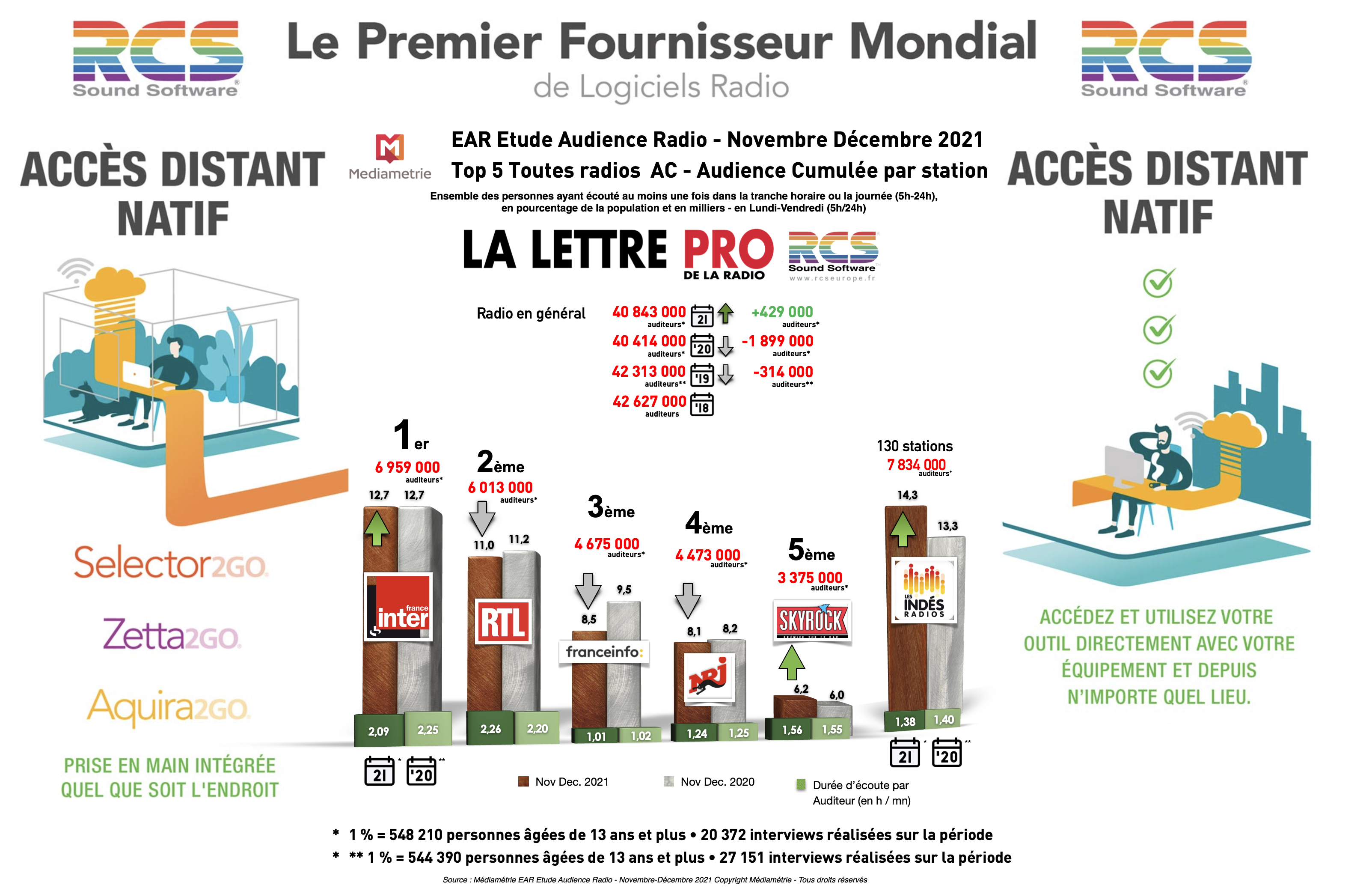 Diagramme exclusif LLP/RCS GSelector Zetta - Le Top 5 toutes radios confondues - EAR novembre-décembre 2021