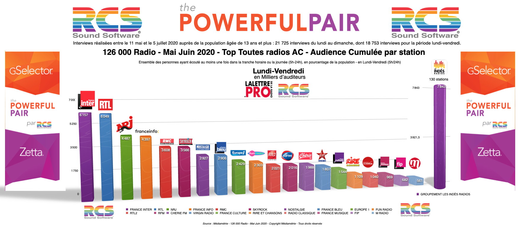 Diagramme exclusif LLP/RCS - TOP radios en Lundi-Vendredi - 126 000 Mai-Juin 2020