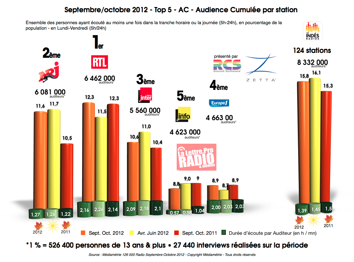 Septembre/octobre 2012 - Top 5 - AC - Audience Cumulée par station