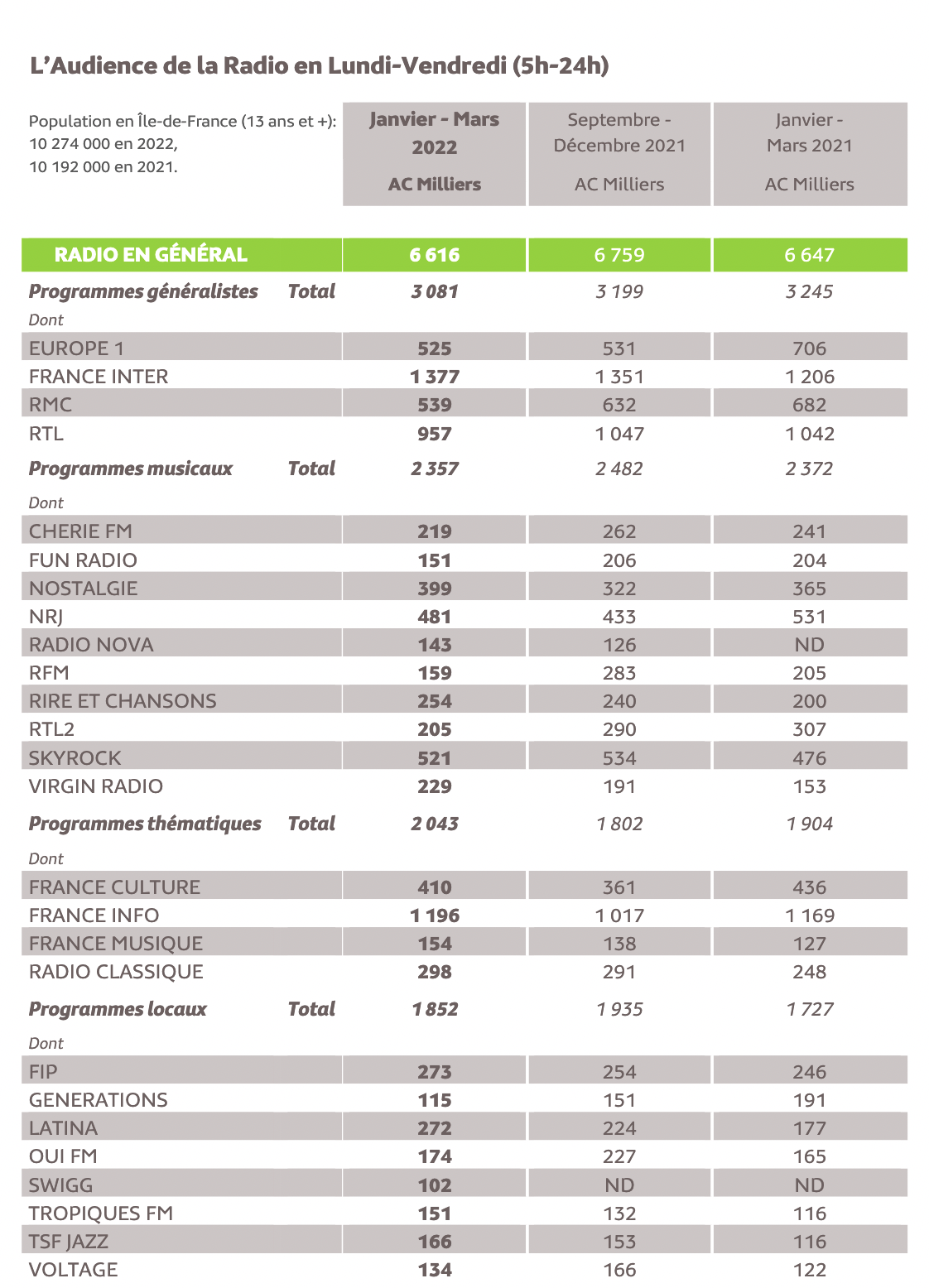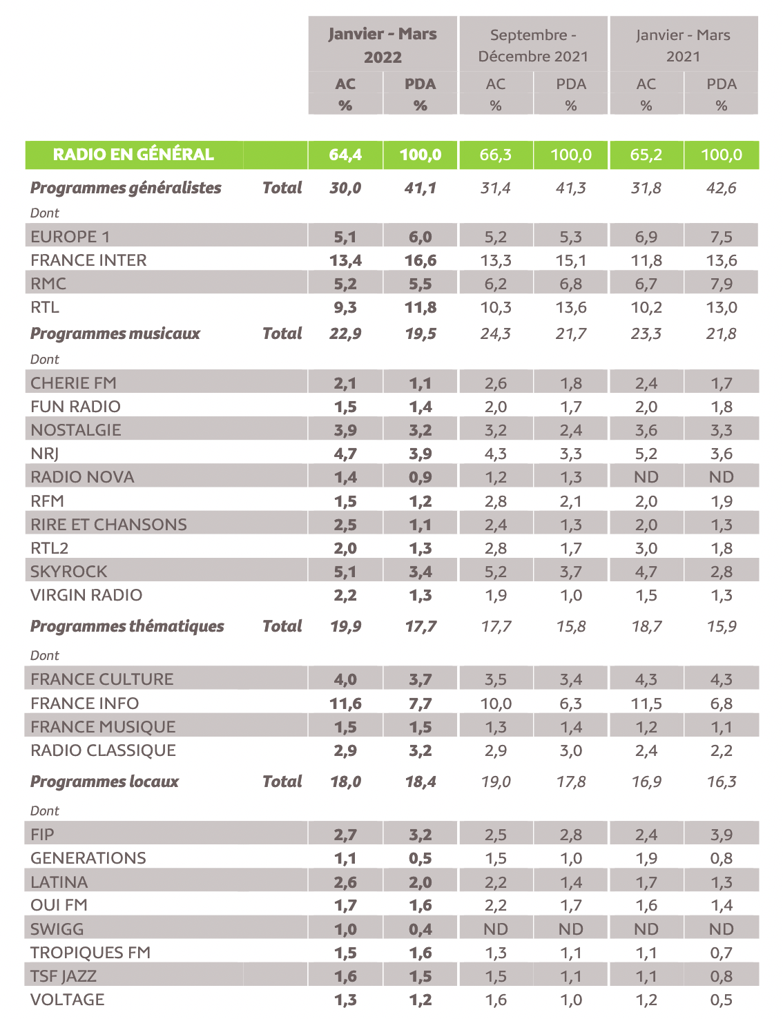 Depuis septembre 2021, la mesure d’audience de la radio, désormais baptisée EAR (Étude Audience Radio), repose sur une enquête téléphonique déclarative renouvelée, optimisée et plus compétitive.