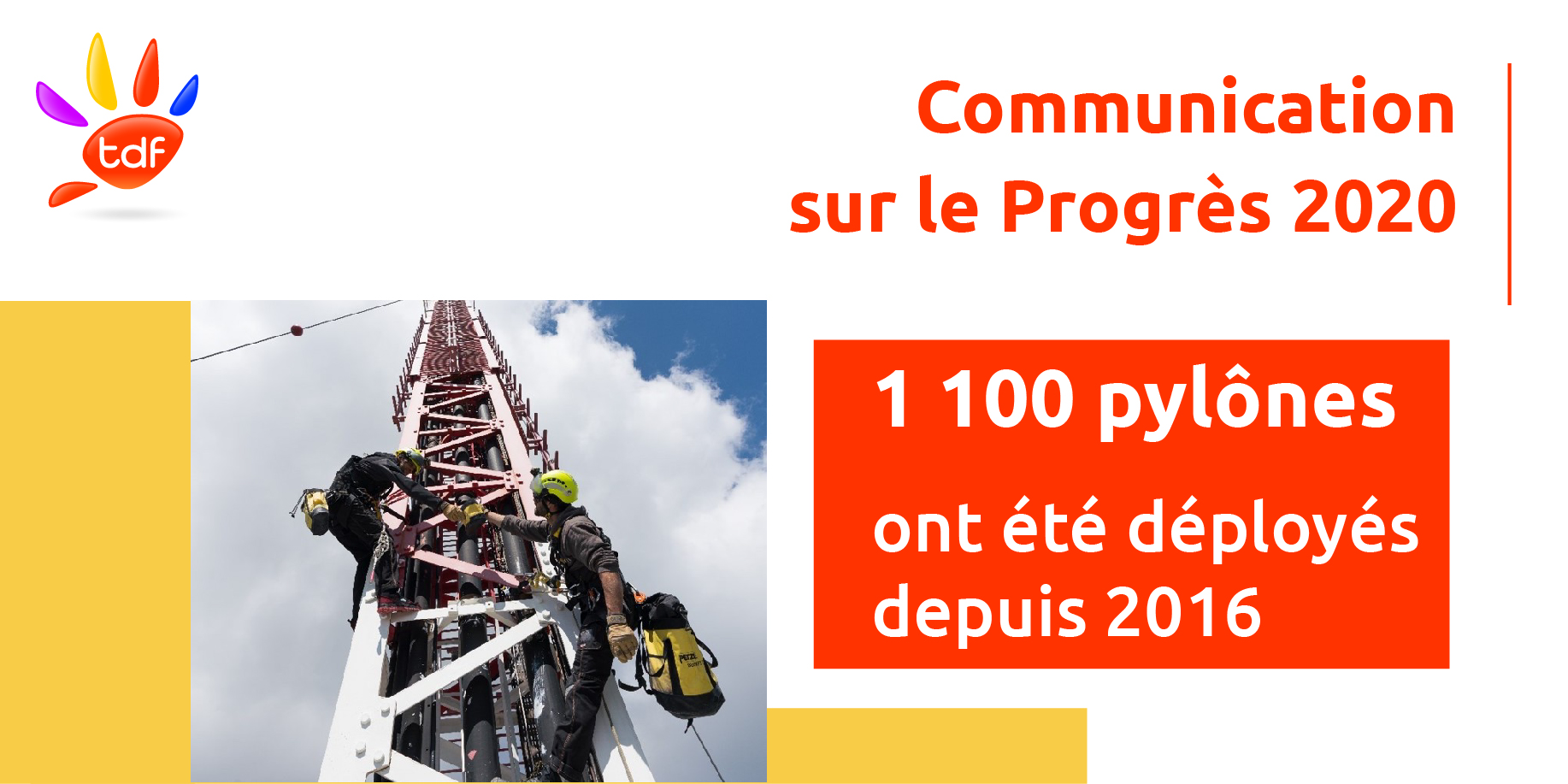 "Le groupe TDF poursuit son chemin d’entreprise toujours plus responsable au service de la couverture numérique du territoire, si nécessaire à la population. En 2020, les activités de TDF ne se sont jamais interrompues. TDF a su mettre en place de nouveaux modes de travail pour maintenir le lien avec ses collaborateurs, ses clients, ses partenaires et ses fournisseurs, tout en garantissant la sécurité de chacun. À nouveau en 2021, j’ai la fierté de renouveler l’engagement de TDF à soutenir les dix principes du Pacte Mondial des Nations-Unies et à le faire vivre au sein de notre politique de responsabilité sociétale et auprès de nos équipes" a expliqué Olivier Huart, Président-Directeur Général du groupe TDF