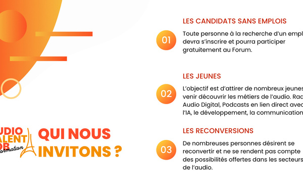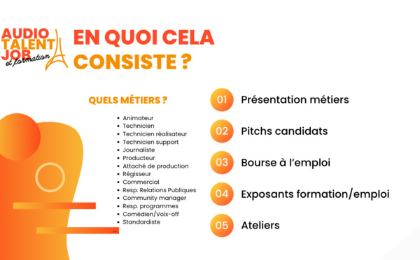 C'est une des grandes nouveautés du prochain Paris Radio Show (les 28 et 29 janvier à La Bellevilloise à Paris) : l'Audio Talent Job. Une journée spéciale pour évoquer l'emploi sous toutes ses coutures dans le secteur de la radio et de l'audio digital. Si vous êtes à la recherche d'un emploi en tant qu'animateur, technicien, réalisateur ou journaliste, c'est le moment de vous faire connaître !