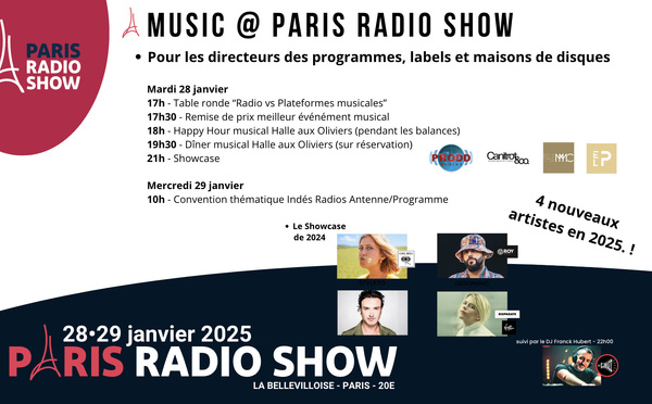En 2024 le showcase du Paris Radio Show avait réuni Zaho de Sagazan, Styleto, Arno Santamaria et Geronimo grâce aux experts de la promotion radio (Éric Lelièvre, Rodolphe Brossard, Jean-Michel Canitrot et Hervé Cocto). En 2025, le showcase est reconduit et confirmé dans la salle de concert conviviale de La Bellevilloise et réunira les directeurs de programmes francophones et les acteurs importants de l’industrie de la musique.