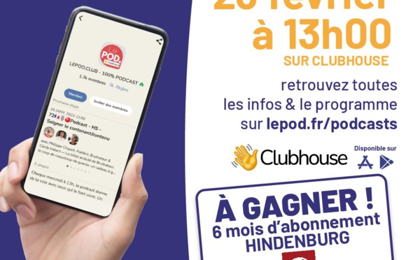 Produire un podcast, c'est bien. Parvenir à le monétiser, c'est encore mieux. Dans cette nouvelle Room sur ClubHouse, l'équipe du magazine LePOD. procèdera à un 360° sur la monétisation des podcasts. L'objectif étant de repartir avec des idées à mettre en pratique. Rendez-vous, en direct, ce mercredi 23 février à partir de 13h...