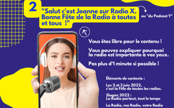 La Fête de la radio approche et les radios francophones peuvent se servir gratuitement de cet outil mis en place par l'Arcom en 2021, fête désormais coordonnée par la nouvelle association pour la Fête de la radio. Une animation, en prévision du 2 et 3 juin, appelle toutes les radios à encourager les personnalités connues des auditeurs (à leurs animateurs, leurs journalistes, leurs chroniqueurs, leurs humoristes...) à réaliser un selfie vidéo.