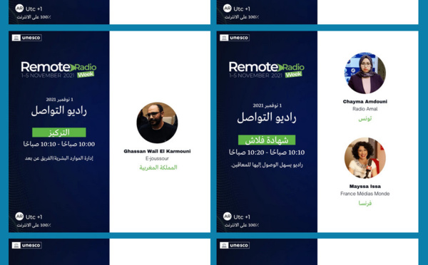Organisée par l'UNESCO avec l'OMS et opérée par les Éditions HF, la Remote Radio Week se déroule depuis lundi et jusqu'à demain vendredi. Cinq journées déclinées en 4 langues (arable, anglais, français et espagnol) et destinées aux radios communautaires qui y viennent chercher des solutions pratiques pour se développer et assurer leurs programmes durant les crises sanitaires, politiques ou climatiques...