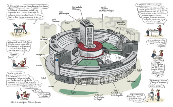Qui n’a jamais rêvé de pénétrer au cœur de la Maison de la radio, dédale architectural dont la célèbre silhouette se dresse sur les bords de Seine ? L’intrépide Charlie Zanello, muni d’un carnet à dessin et d’un crayon, a joué le petit reporter au cœur de la Maison ronde...