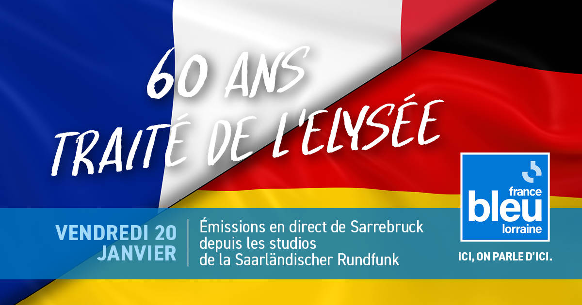 Une journée spéciale pour fêter 60 ans d'amitié franco-allemande et découvrir ce qui nous rassemble ou nous différencie et en apprendre plus sur la culture et les programmes de nos voisins proches. Entre 6h et 9h, des invités se succèderont au micro. Le baladeur de France Bleu Lorraine ira également à la rencontre de nos voisins allemands dans les rues de Sarrebruck tout au long de la matinée.