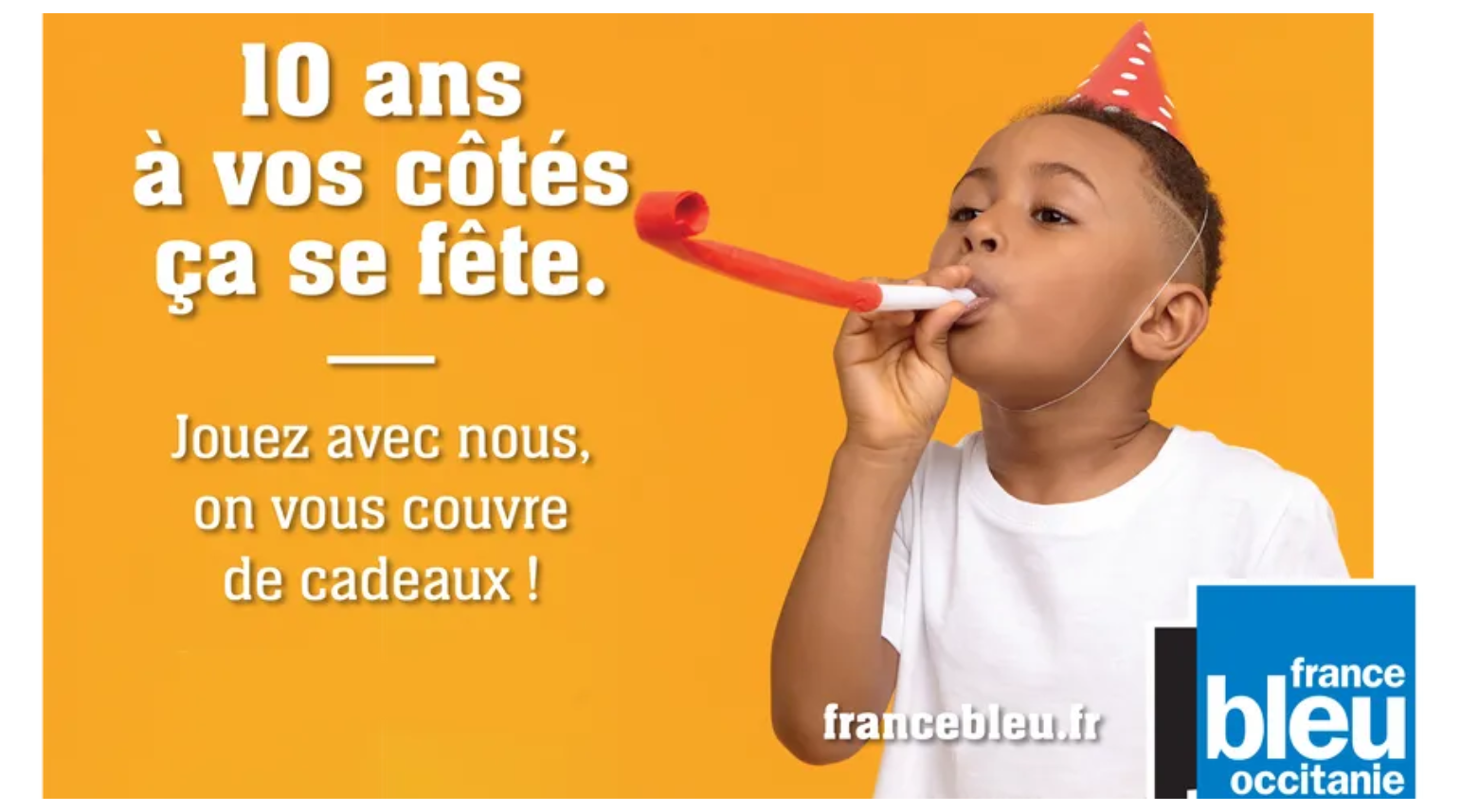 Du 1er au 15 février, tous les matins, du lundi au vendredi, Sébastien Brethenou intervient en direct d'un marché ou d'un centre-ville entre 07h30 et 11h et offre à des commerçants et à des habitants des tee-shirts ou des récepteurs de radio DAB+ et FM collectors aux couleurs des 10 ans de France Bleu Occitanie.