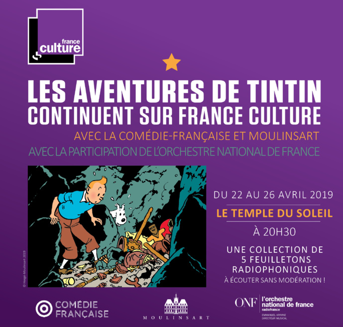 Depuis hier, France Culture propose également "Les Cigares du Pharaon" (2015) une série en écoute jusqu’au 10 mars 2019, "Le Lotus bleu (2016)" disponible jusqu’au 10 décembre 2019, "Les 7 Boules de cristal" en écoute jusqu’à avril 2020. Par ailleurs, France Culture rediffusera "Les 7 Boules de cristal" du 15 au 20 avril 2019 de 20h30 à 20h55 et promet de créer prochainement une nouvelle série consacrée au Bijoux de la Castafiore.