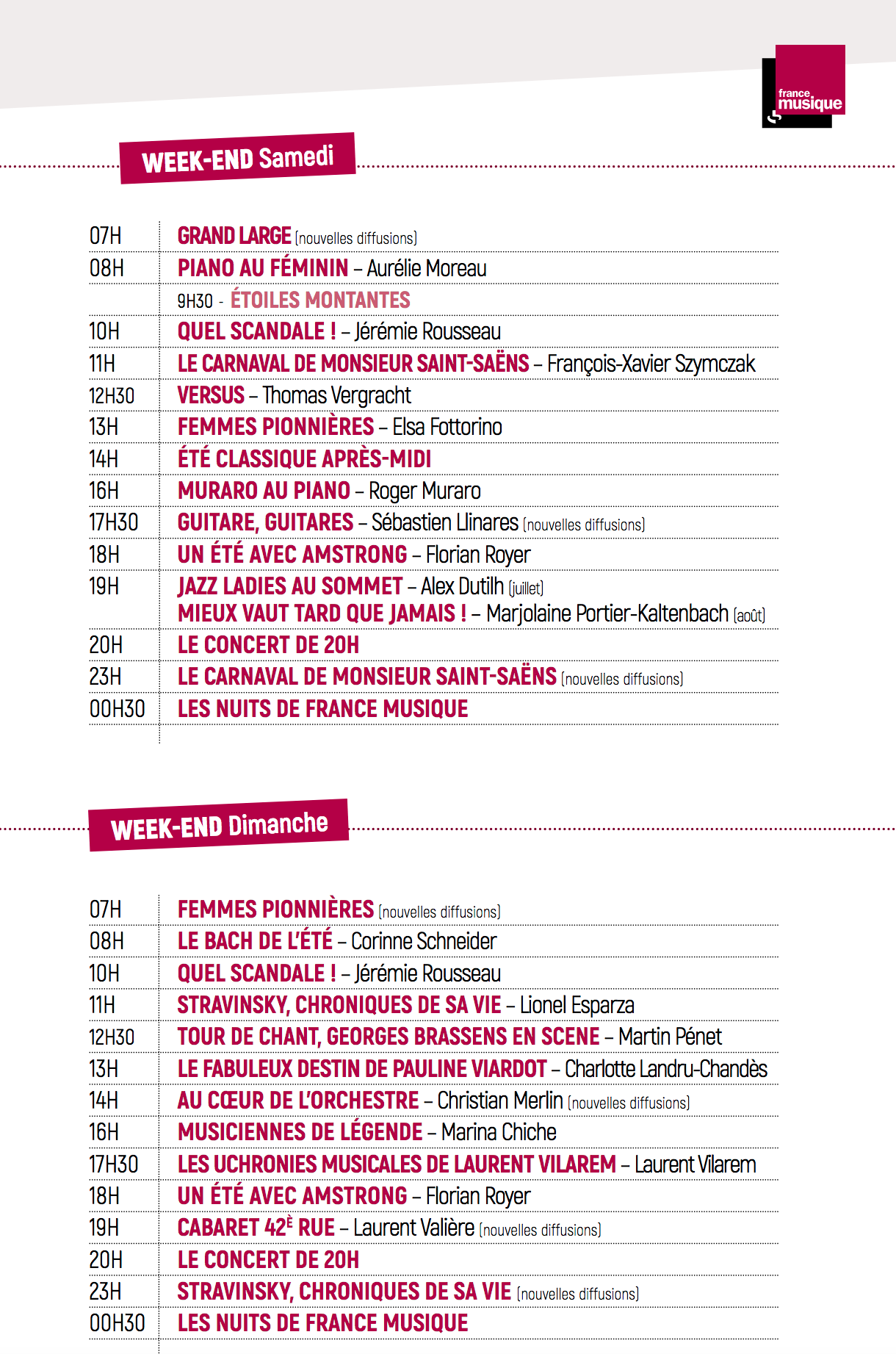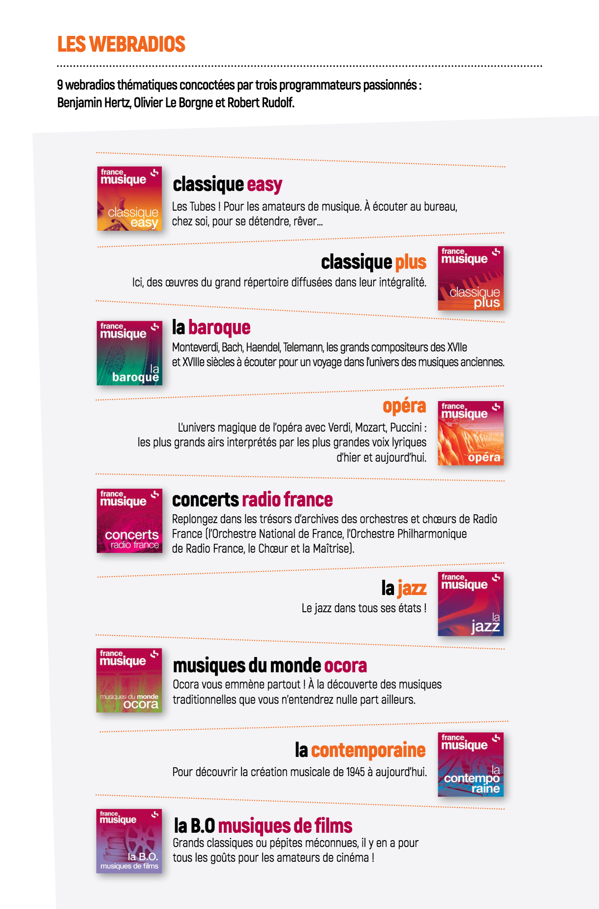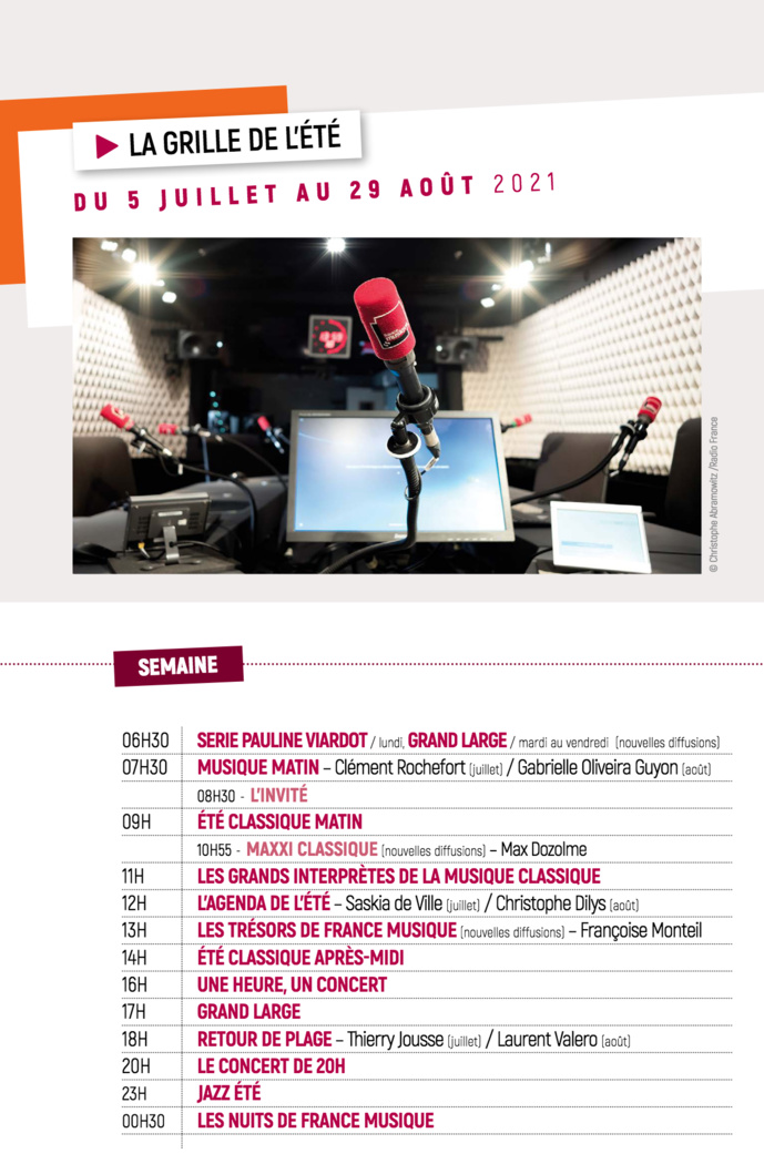 "Fidèle à sa promesse estivale, nous sommes très heureux de vous prendre à nouveau par la main et de vous emmener à Aix, Montpellier, Beaune, Orange, Prades, Marciac, La Roque d’Anthéron, au Pays de la Meije, à Londres, Verbier, Salzbourg et Bayreuth" explique Marc Voinchet, directeur de France Musique. "Partager la musique par ceux qui la font, partout en France et en Europe,