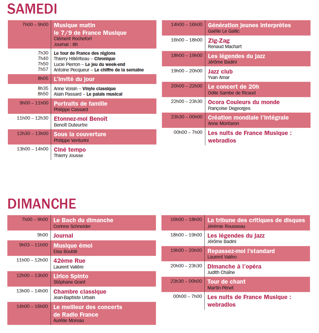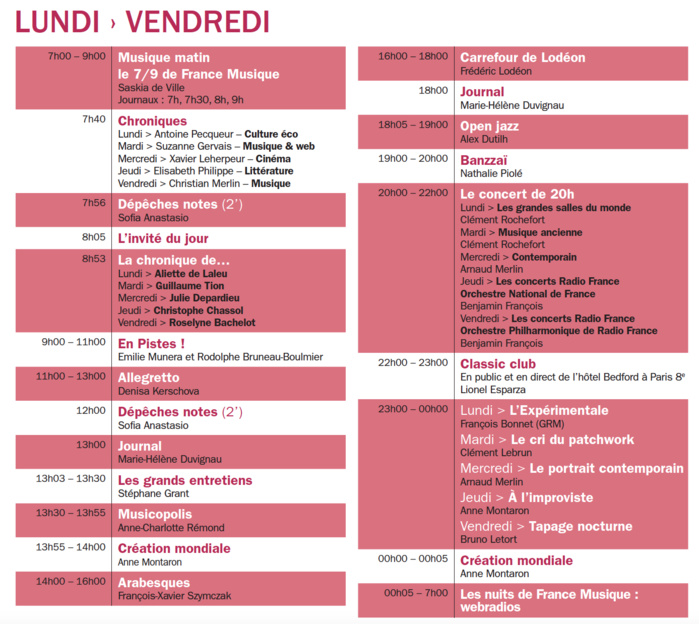 Pour la rentrée, France Musique organisera plusieurs événements une Journée Emmanuel Krivine, directeur musical de l’Orchestre national de France (le 07/09), les 80 ans de l’Orchestre Philharmonique de Radio France (le 15/09), une Journée Maria Callas, pour les 40 ans de sa disparition (le 18/09) ou deux journée en direct du Festival Musica (les 22 et 23/09).