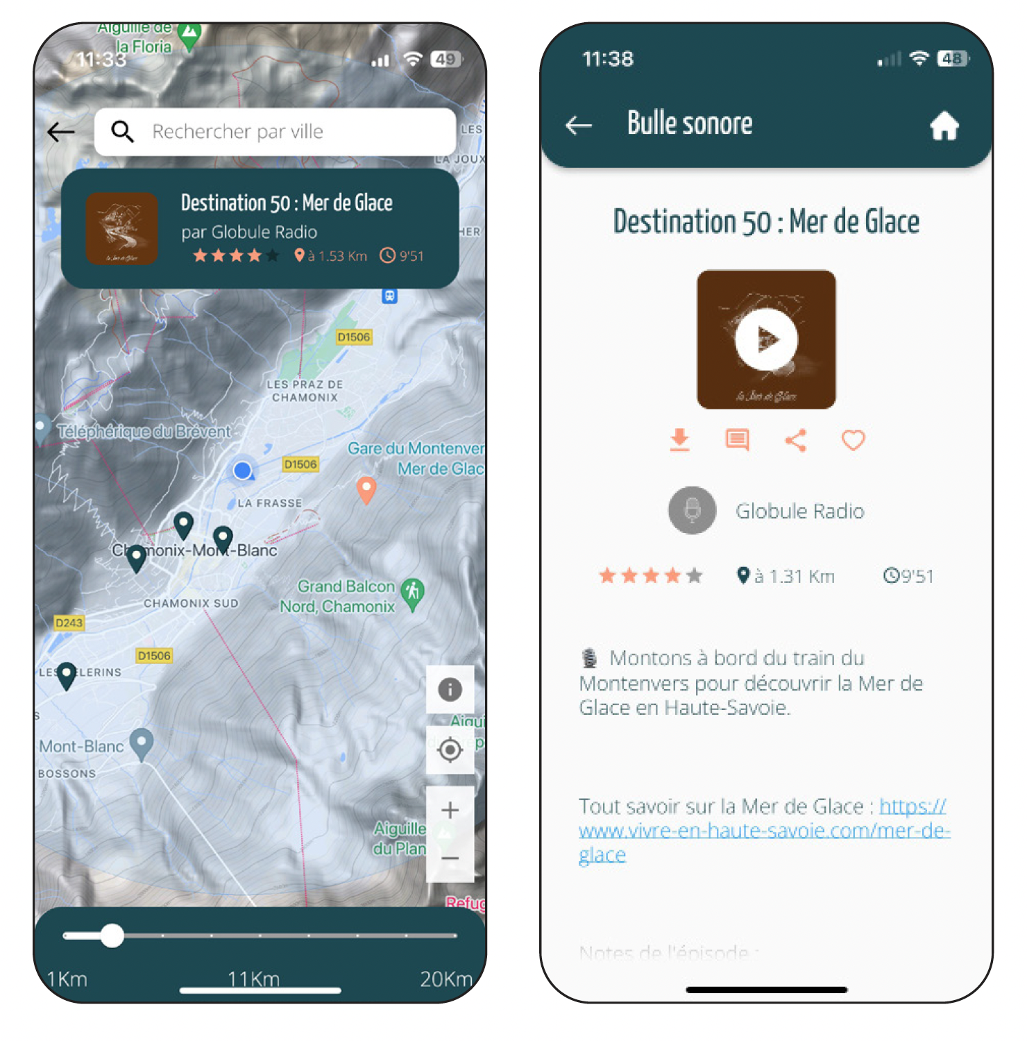 La jeune start-up parisienne Karacal a, en effet, développé une appli qui permet, lorsque vous êtes en déplacement, de découvrir tous les épisodes de podcast qui sont en rapport avec les territoires que vous parcourez. Il vous suffit de cliquer sur les icônes qui apparaissent au fil de votre progression et vous pouvez accéder directement au son de l’épisode en rapport avec le lieu.