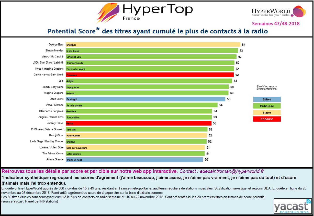 HyperTop France : l'agrément des auditeurs aux 30 titres les plus entendus en radio