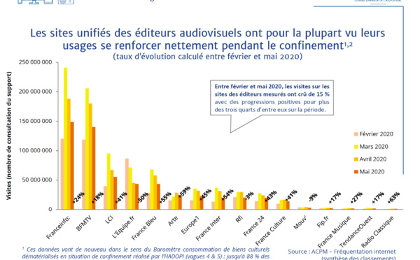 Le CSA a publié un nouvel et 5e baromètre permettant de suivre l’évolution de l’audience de la télévision, la fréquentation des sites et applications des éditeurs de télévision et de radio, et les investissements publicitaires en télévision et en radio depuis la mise en place des mesures de confinement qui ont profondément bouleversé les modes de vie des Français et l’économie du pays.