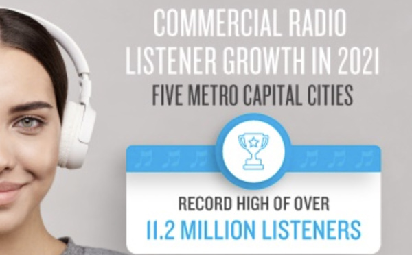 En Australie, le dernier bilan d'écoute annuel de montre que les audiences hebdomadaires ont augmenté de 1.3% pour atteindre un record de 11.2 millions d'auditeurs dans les cinq capitales métropolitaines australiennes en 2021.