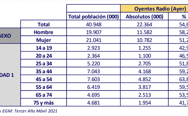 En Espagne, plus de 22 millions de personnes (55% de la population) écoutent la radio en moyenne quotidiennement. Les podcasts d'émissions de radio en direct diffusées précédemment, sont en tête du classement des types de podcast préférés...