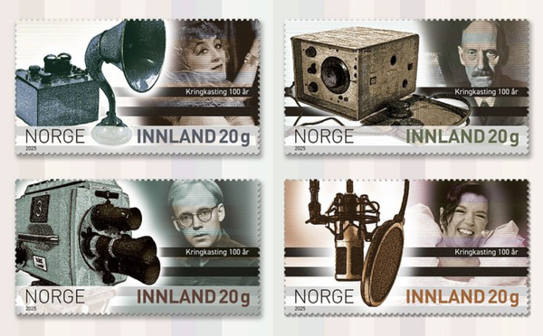 Pour marquer le centenaire de la radio et de la radiodiffusion, Posten (la Poste norvégienne) a lancé une série de quatre timbres commémoratifs retraçant un siècle d’histoire des voix du pays. Des débuts de la radio à cristal aux podcasts modernes, chaque visuel rend hommage aux grandes figures de la communication sonore.