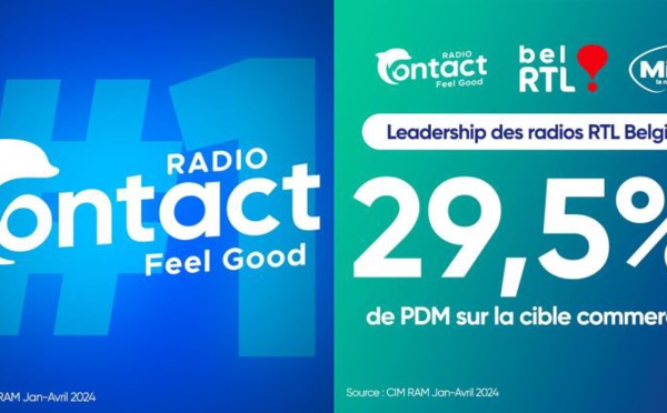 Le CIM vient de publier les résultats de sa dernière vague de sondages relatifs aux audiences des radios en Belgique concernant les mois de janvier à avril 2024. Avec un total de 29.5% de parts de marché sur la cible commerciale (18-54 ans), RTL Belgium (avec ses 3 radios : Radio Contact, bel RTL et Mint) devient leader.