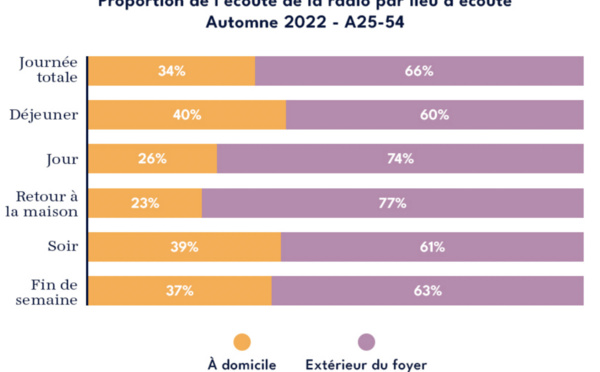 Cet automne, de nombreux canadiens ont repris le chemin du bureau et abandonné le télétravail. Bien que celui-ci demeure toujours une option, le présentiel a été un choix populaire ce qui a logiquement provoqué une hausse de l'écoute de la radio en dehors du foyer. L'audience automnale a ainsi retrouver ses niveaux de l'automne 2021.