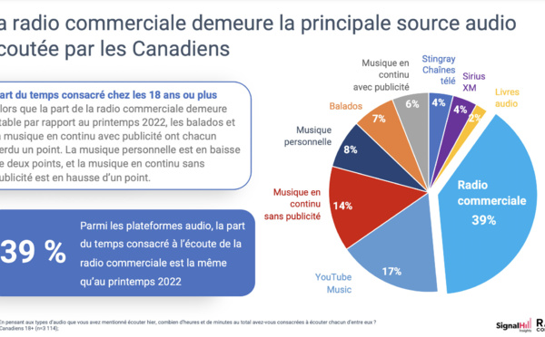Au Canada, la radio commerciale demeure la principale source audio écoutée par les Canadiens selon l'étude "La radio en mouvement" qui offre un aperçu de l’évolution de l’univers audio depuis le printemps 2022. L'étude a été réalisée par Signal Hill Insights et Radio Connects.