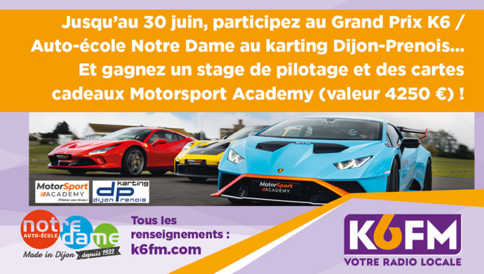 Les sélections se font à tout moment sur le circuit de karting de Dijon Prenois, avec le mot de passe "K6FM" permettant de recevoir gratuitement la carte de membre du circuit, et de faire les sessions à tarif réduit (20€ au lieu de 24). On peut en faire autant qu’on veut, pour assurer sa place dans le top 20 et figurer parmi les finalistes. La finale se déroulera sur ce même circuit le mardi 2 juillet à 18h30 avec une course rassemblant les 20 meilleurs chronos.