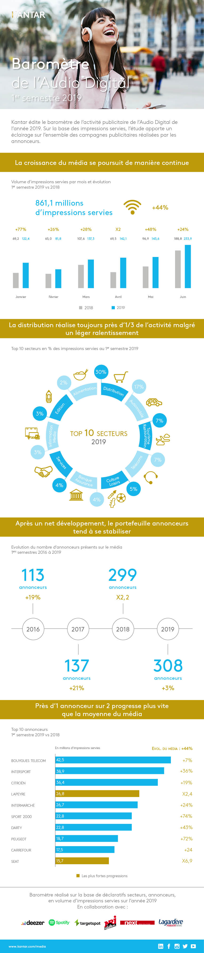 Après un net développement ces dernières années, le portefeuille annonceurs tend à se stabiliser. De 113 annonceurs en 2016, ce sont désormais 308 annonceurs qui ont été comptabilisés par Kantar. Autre constat issu de cette activité au 1er trimestre, près d'un annonceur sur deux progresse plus vite que la moyenne du média