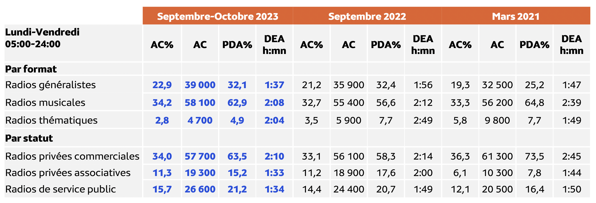 Les résultats Radio par agrégat © Médiamétrie – Étude Polynésie française Septembre-Octobre 2023 - 13 ans et plus - Copyright Médiamétrie - Tous droits réservés