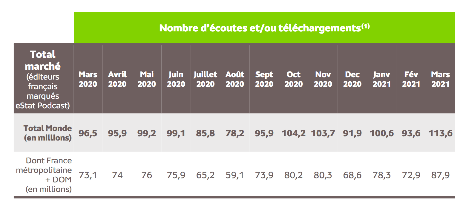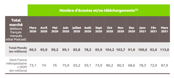 Le Groupe Lagardère a réalisé les développements techniques qui lui permettent de prendre en compte dans la mesure l’intégralité des écoutes en streaming de ses podcasts. Les développements sont en cours chez les Groupes M6-RTL et Radio France afin de passer à un périmètre complet dans les prochains mois...