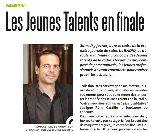 Trois finalistes par catégorie (animateur, journaliste et chroniqueur) et quelques minutes seulement pour séduire et tenter de remporter le trophée des Jeunes Talents de la Radio. "Cette deuxième édition est plus qualitative" souligne Rémi Castillo le fondateur du concours.