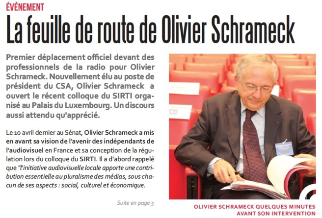 Le 10 avril dernier au Sénat, Olivier Schrameck a mis en avant sa vision de l'avenir des indépendants de l'audiovisuel en France et sa conception de la régulation lors du colloque du SIRTI. Il a d'abord rappelé que "l'initiative audiovisuelle locale apporte une contribution essentielle au pluralisme des médias, sous chacun de ses aspects : social, culturel et économique.