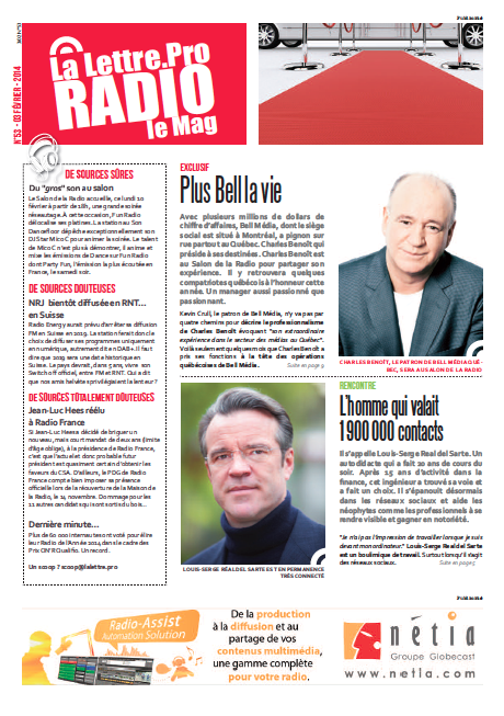 Abonnez-vous au magazine papier de La Lettre Pro de la Radio et faites ainsi bénéficiez vos équipes de contenus exclusifs. Recevez ainsi tous les quinze jours La Lettre Pro de la Radio en format papier et numérique pour consulter votre magazine sur toutes les plateformes existantes (Web, iPad, iPhone, Android...).