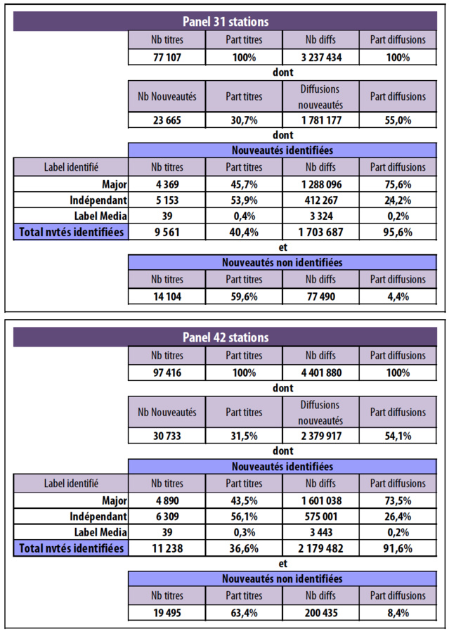 Nombre de titres diffusés, d'artistes, de diffusions, de contacts