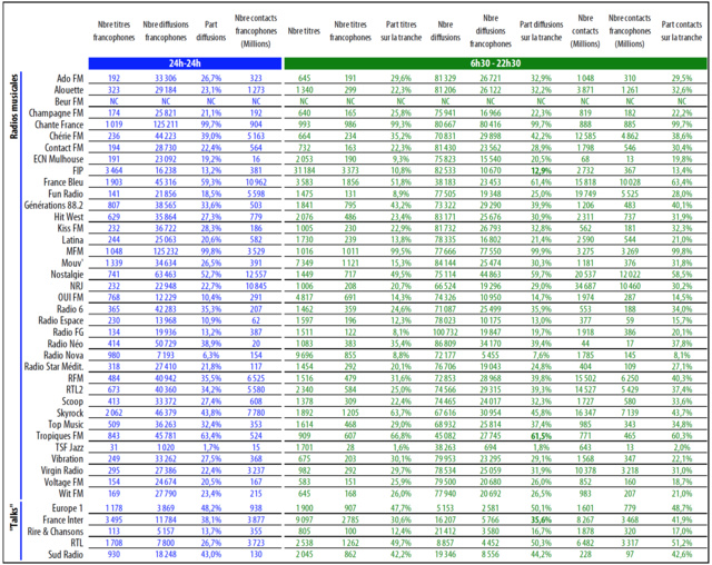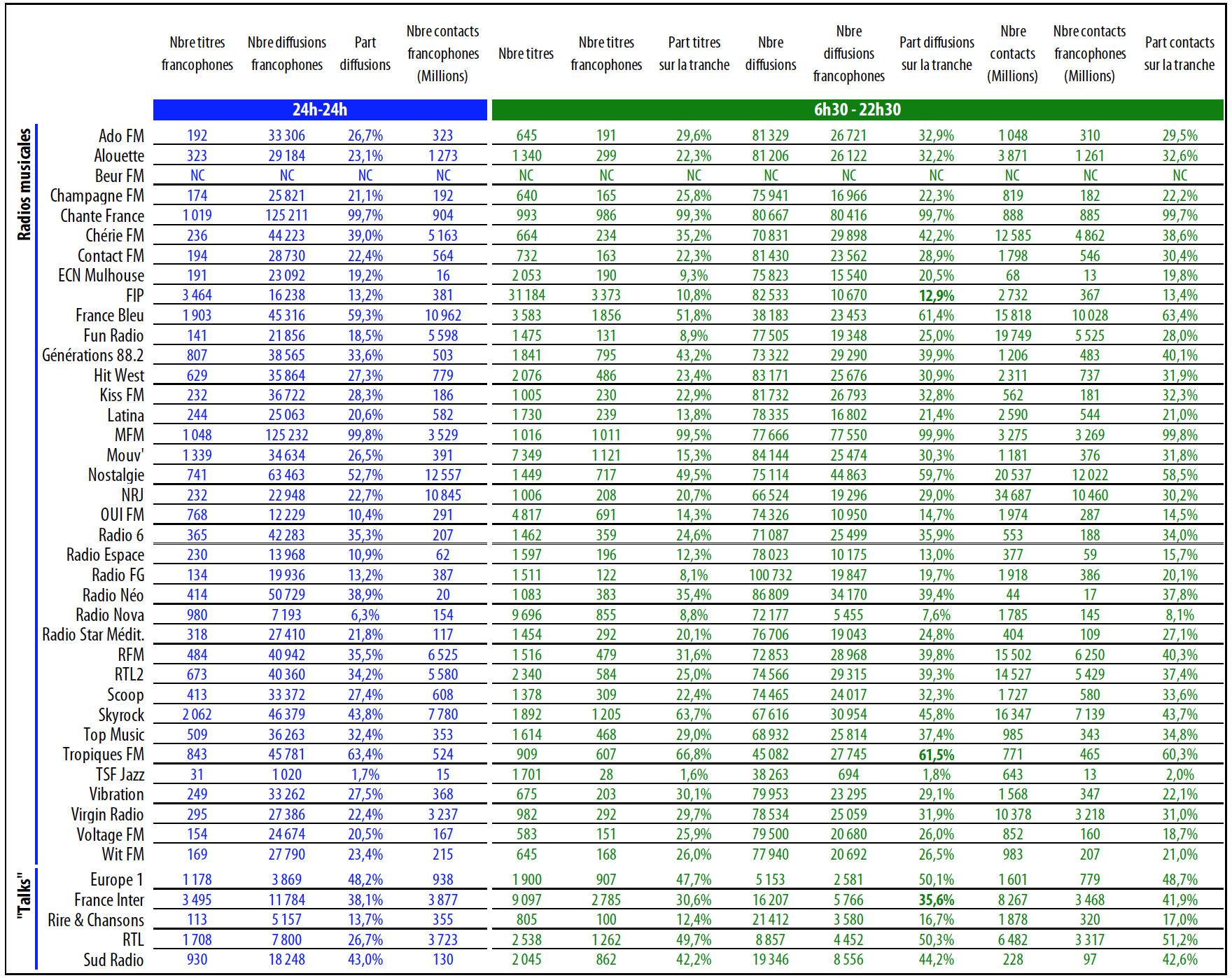 Diffusions francophones sur la tranche horaire 6h30 - 22h30
