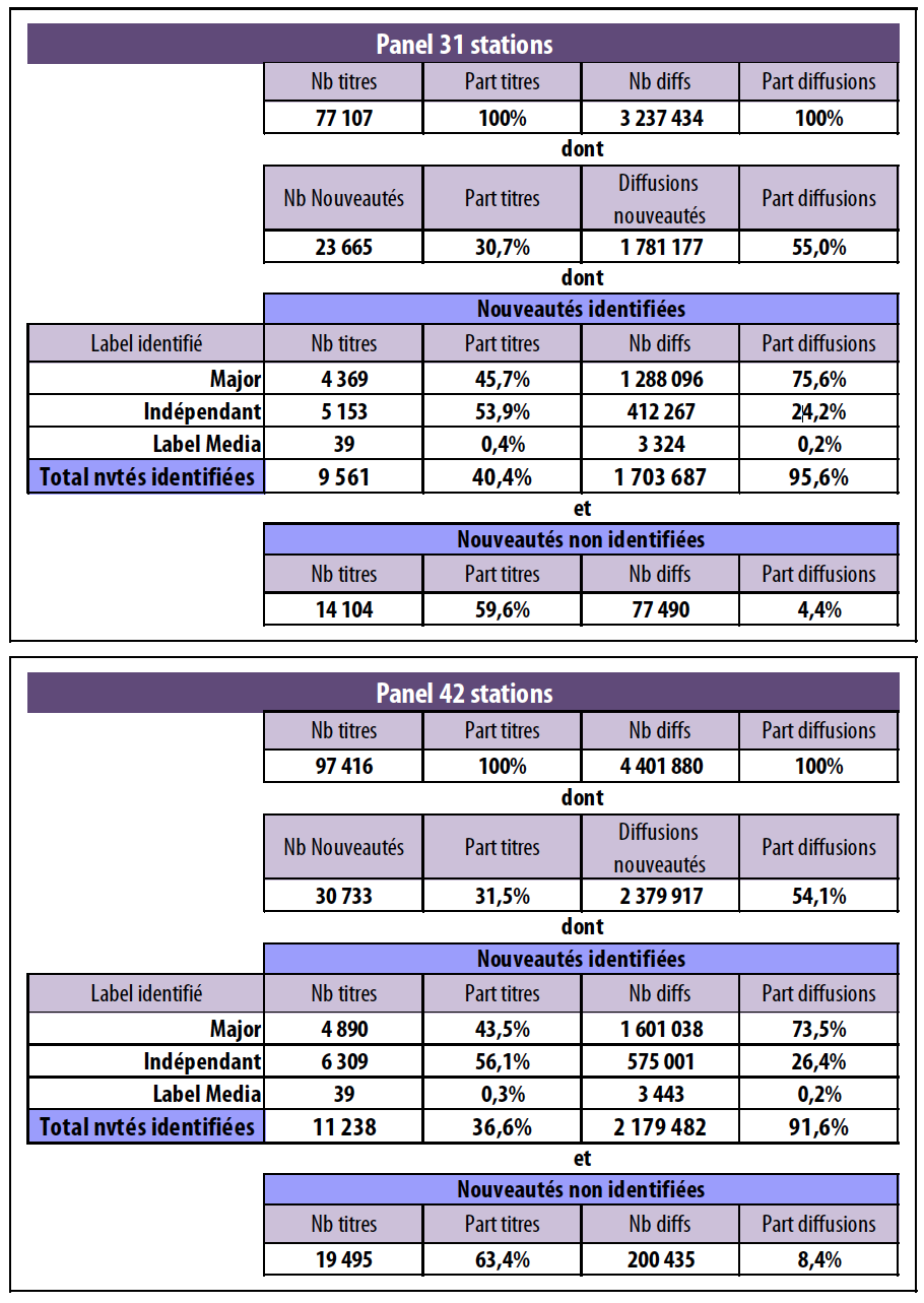 Depuis l’année 2011, le panel de 31 stations est conforté par l’ajout de 11 nouvelles stations. Le panel 42 stations comprend 31 radios historiques, 10 nouvelles radios indépendantes (Beur FM, Chante France, ECN Mulhouse, Générations 88.2, Latina, Radio Espace, Radio FG, Radio Nova, Tropiques FM et TSF Jazz), 1 radio associative (Radio Néo). Les radios de ce panel se répartissent autrement puisqu’on recense par groupes d’opérateurs : le groupe NRJ qui dispose de 4 stations (NRJ, Chérie FM, Nostalgie et Rire & Chansons), le groupe RTL qui dispose de 3 stations (RTL, RTL 2 et Fun Radio), le groupe Lagardère Active qui dispose de 3 stations (Europe 1, Virgin Radio et RFM), le groupe Radio France qui dispose de 4 stations (France Inter, France Bleu, FIP et Mouv’), 23 stations indépendantes représentées par le SIRTI, 4 stations indépendantes (Skyrock, MFM, Radio Nova et TSF Jazz, Une station indépendante associative représentée par le SNRL (Radio Néo)