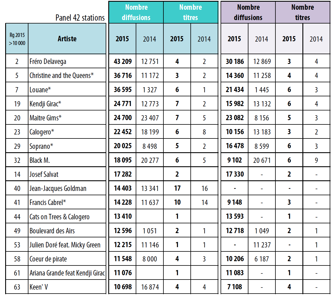 17 artistes francophones diffusés plus de 10 000 fois en 2015