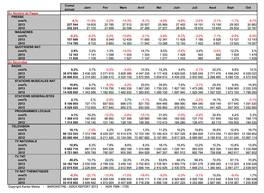 Dans une moindre mesure, on soulignera également la très forte hausse budgétaire de la mode (+ 55,5%). Sur le cumul annuel, la radio enregistre + 8,2% de recettes brutes.